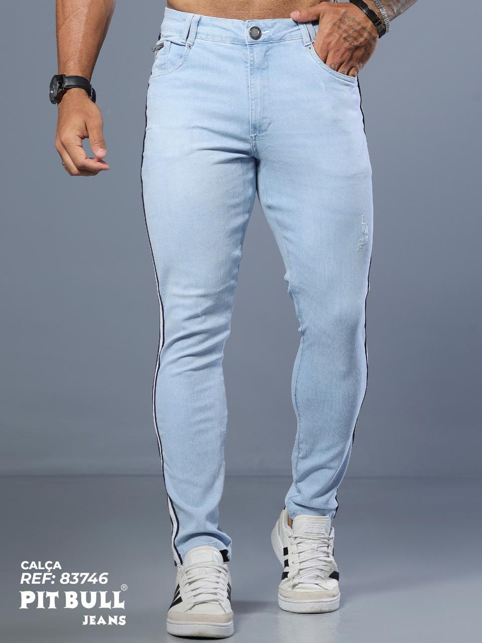 Calça Masculina Clara e Estilosa com Lateral Personalizada Pit Bull Jeans
